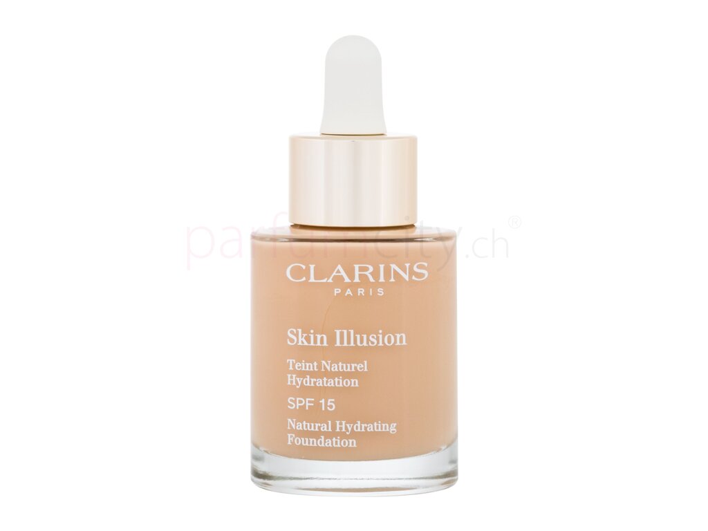 Kosmetik Clarins Clarins Skin Illusion Foundation SPF10 Nährendes ölfreies Make-Up mit erhellender Wirkung. Beinhaltet pflanzliche und mineralische Aktivstoffe, die die Haut perfekt erhellen und hydratisieren. Dreifache Schützt vor freien Radikalen, Umwelteinflüssen und UV Strahlungen. Mittlere Abdeckung Hinweis: Die Originalfarben des Produkts können von der abgebildeten Farbpalette leicht abweichen. Die Farbe kann von den Farbeinstellungen Ihres Monitors beeinfluss werden.