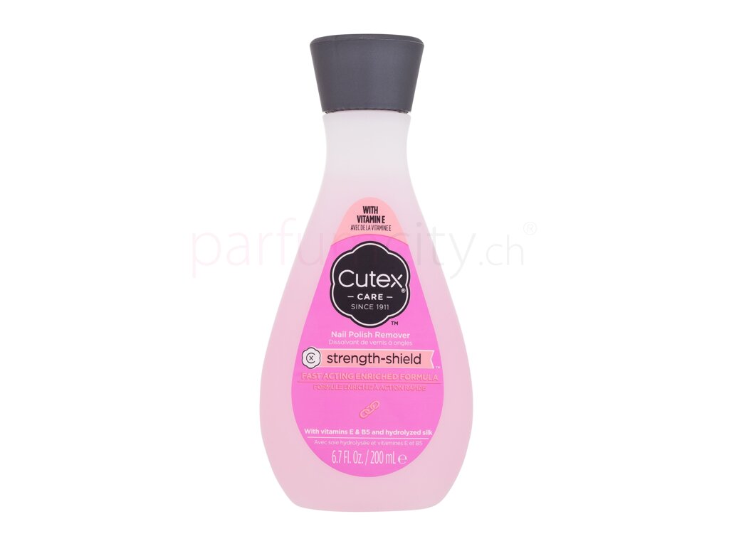 Der Cutex Strength-Shield Nail Polish Remover entfernt schnell und effizient Nagellack von den Nägeln. Seine Formel ist mit hydrolysierter Seide, Vitamin E und Vitamin B5 angereichert, die starke Nägel fördert und für das gepflegte Aussehen der Nägel sorgt. Die Nägel bleiben dank den pflegenden Komponenten auch nach der Entfernung hydratisiert und vor Brüchigkeit geschützt.