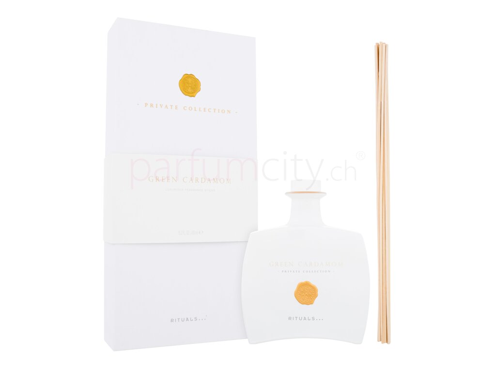 Rituals ist die heiß begehrte niederländische Marke, die die Weltmärkte mit den durch Natur und östliche Rituale inspirierten Produkten beliefert. Unter diesen prunkt auch der Aroma-Diffuser mit Stäbchen Rituals Private Collection Green Cardamom. Legen Sie die Stäbchen ins Fläschchen mit dem Parfum ein und stellen Sie es in jeden beliebigen Raum, von der Diele über das Wohnzimmer oder das Schlafzimmer bis zur Küche und zum Bad. Die Intensität des Duftes unterstützen Sie im Laufe der Zeit, indem Sie zeitweilen die eingetauchten Stäbchen umdrehen. Waschen Sie nach der Manipulation mit den Stäbchen die Hände mit Seife. Die Serie umfasst den Raumduft in Form eines Sprays oder luxuriöse Duftstäbchen.