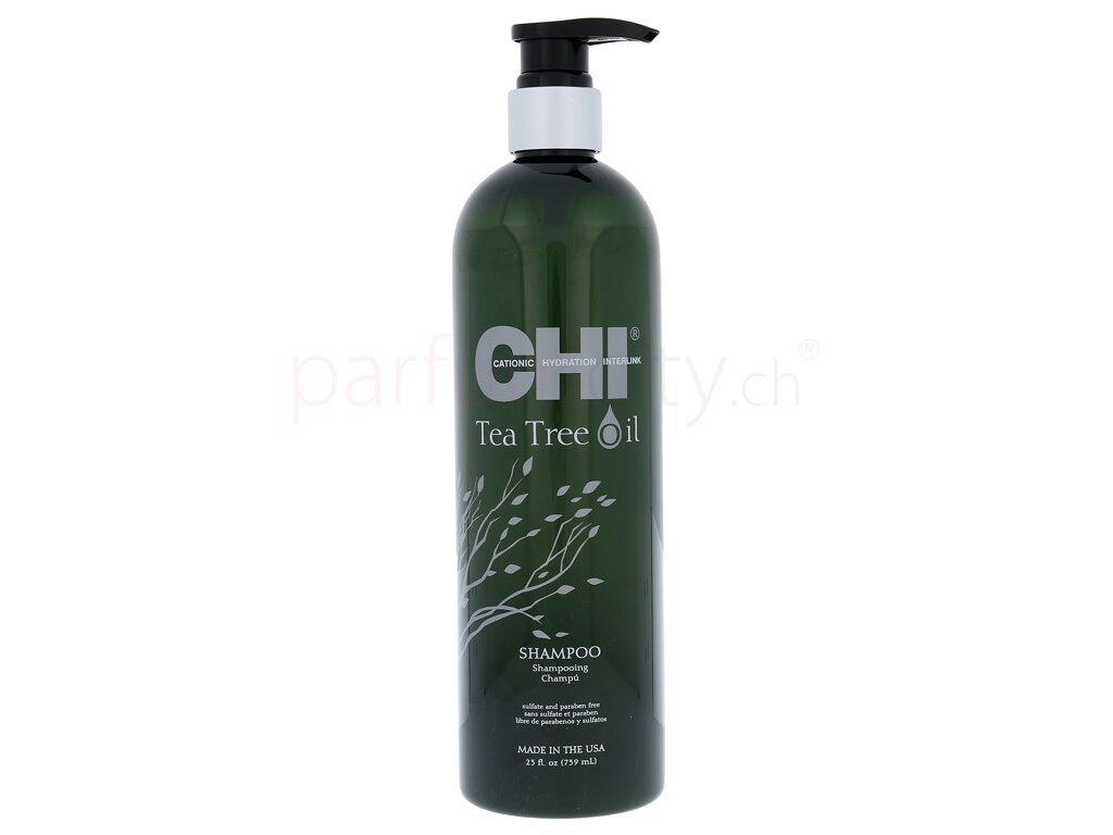 Farouk Systems CHI Tea Tree Oil Shampoo reinigt sanft und grünlich das Haar. Die Pflegeformel mit Tea Trea Öl renigt und erfrischt das Haar. Minzöl beruhigt die Kopfhaut und beugt weitere Irritationen vor. Nach der Anwendung werden die Haare, frisch, stark und geschützt.